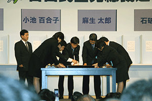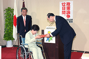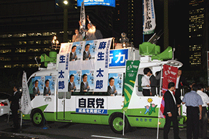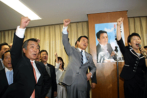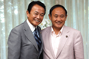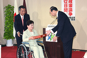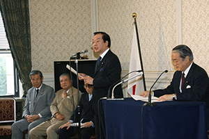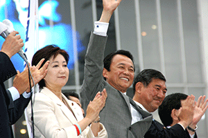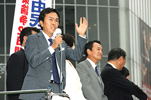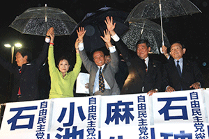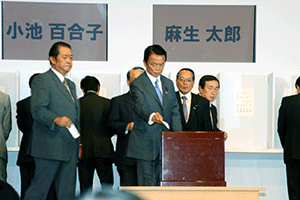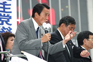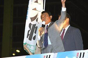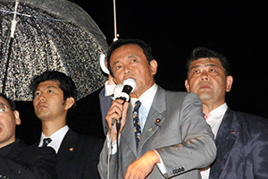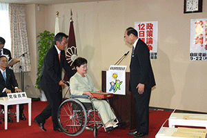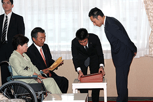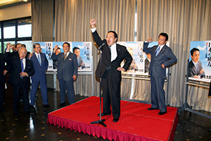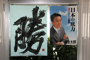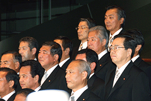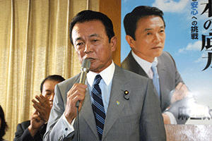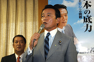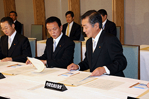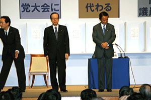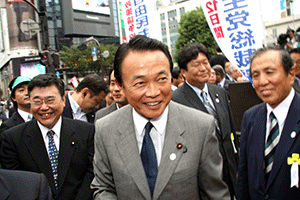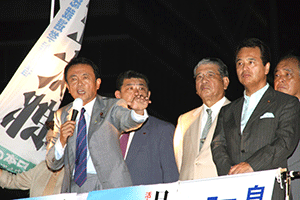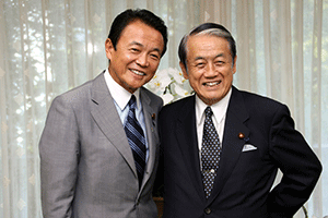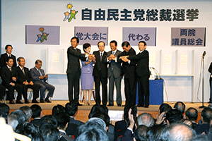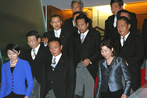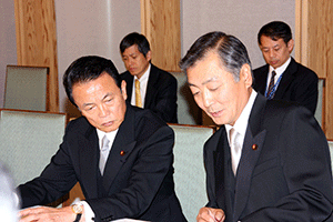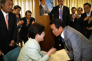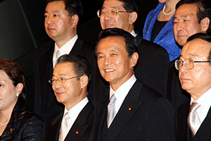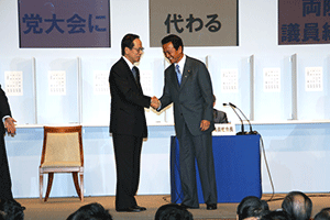 9/22麻生総裁選勝利 9/24麻生総理・松純副長官誕生 9/28大相撲秋場所・総理大臣杯授与(代理)/両国国技館 |