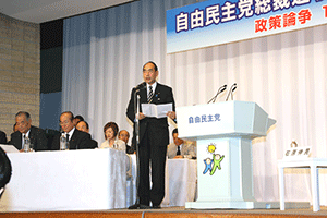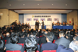 総裁選挙の方法について役員会・役員連絡会合同会議で決定され、その内容が党の最高意思決定機関である総務会で承認されましたので、さらに両院議員総会で報告事項として議題に供されました。福田総裁からの国民・党員に対して今回の事態のお詫びと今後の自民党に期待する挨拶がなされ、麻生幹事長から福田総裁の指示により総裁選挙を行うにあたり選挙管理委員会にその手続きを委ねた旨の報告があり、臼井選管委員長から平成20年総裁選挙について党の手続きを終え報告に至ったこと、またその内容について報告がなされました。それに対し、多数の議員から任期満了に伴う本選挙と同等の方法をとるべきとの意見が相次ぎました。しかし、本選挙と同様の選挙に切り替えるには党大会で党則の変更手続きをしなければなりませんので大変難しい注文でした。意見がほぼ同様と判断された議長である谷川両院議員総会長は、質疑を終了し閉会を宣言されました。私は、意見のある議員全員に発言の機会を与えてもよかったのではないかと思いました。