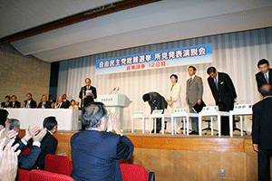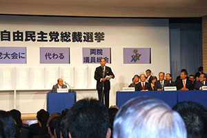 今日の議題は、昨日総裁選挙管理委員会の臼井委員長に投げかけられた総裁選挙のあり方について、臼井委員長から総裁選挙の日程や選挙の方法について委員会の決定事項が報告され、合同会議で了承されました。その内容は、次の通り。
