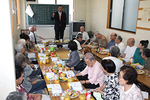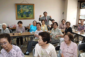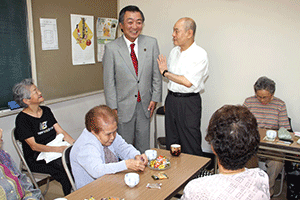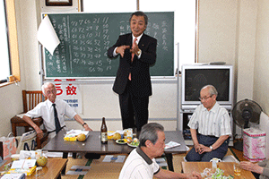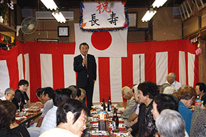 末吉町の万年青会(老人クラブ)のお誕生日会、そしてこのたび退任された金原前会長への感謝の会が盛大に開かれました。20年ものお付き合いをしている金原さんは昔からおっかない叔父さんでしたが、だんだん優しいおじいちゃんになってきましたが、まだまだ元気いっぱい。いつも励まされてきました。感謝感謝!