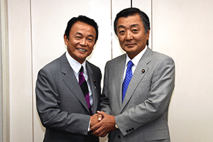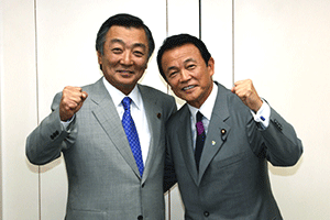 大変光栄なことに鴻池官房副長官とともに麻生総理大臣との会食に招かれました。国会とのパイプ役としての役目も頂戴していますので、我が党の動きについてご報告しました。