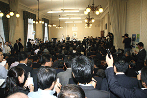 今日は午後5時半から20分ほど番記者との懇談会を開きました。解散時期についての関心が大変高いようでしたが、麻生総理はそれについて何も語っていませんので、お答えのしようがありません。解散することだけが目的ではありませんで、麻生総理は解散の前に、国民に心配をかけないよう迅速に緊急経済対策・補正予算など重要案件を成立させたいと願っています。その審議日程は民主党はじめ野党の皆さんと与党国対が交渉していますので、その結論を待たなければなりません。