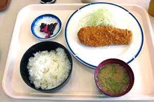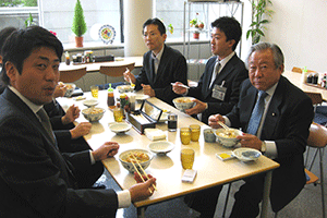 今日の昼めしは官邸2階にある職員食堂でとりました。我々チーム松本(官房副長官)は全員がカジキマグロのフライとご飯、味噌汁、おしんこの定食。また、たまたま食堂で遭遇したチーム鴻池(官房副長官)は全員がカツ丼でした。食堂のスペースはこじんまりしていますが、それもそのはずで、官邸の主(あるじ)は総理大臣と官房長官・副長官3名の合計5名。そしてそのスタッフの皆さんがあの大きな総理官邸を運営しているのです。