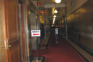 今朝も雨です。自宅を午前7時20分に出発。8時20分に到着しました。まだ官邸の正面玄関は閉まっています。横にある通用口から官房副長官の執務室のある階までエレベーターで上がりました。エレベーターホールにある廊下につながるドアを開けようとすると、鍵がかかっていて開きません。しょうがないのでエレベーターの前にある衛視さん用の椅子に腰掛け、3分ほど待っていると衛視さんが到着し、ドア開けてくれました。早い時間にお邪魔して申し訳ないと思いました。