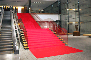 過去、総理の代理として官房副長官が表彰式に出席していますが、総理大臣杯が約40キログラムと重いため、ぐらつくケースが多いと聞かされました。本番で総理大臣杯につぶされてはえらいこっちゃ、と昨夜は56キログラムの家内を抱きかかえ、重さに耐えられるか実験してみました。結論は持ち方で、しっかり力を入れることが出来れば56キログラムまでは耐えられることが判明し、何とかなりそうだと確認して当日を迎えました。