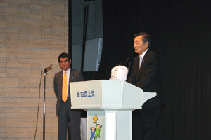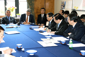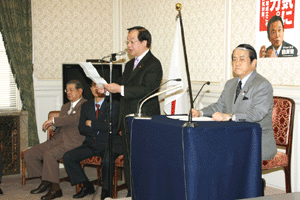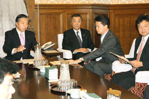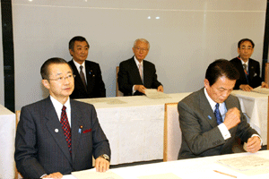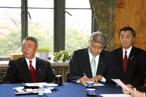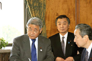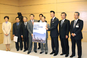 中田横浜市長をはじめとする2010年APEC横浜誘致実行委員会の皆さんや小此木会長をはじめとする誘致を応援する議員連盟の皆さんが、総理に要請活動を行いました。総理は対応できませんでしたので、河村官房長官と私がその要請を受けました。大変熱心な取り組みを継続されていて、能舞台を作るなど「日本」を演出する仕掛けについて中田市長から説明がなされました。間もなく国内のどこで開催するか決定されます。