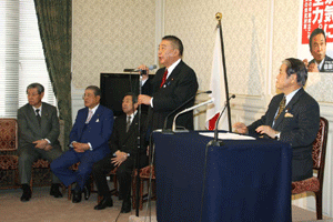 「昨日から秋田県知事選挙が始まった。秋田県連は佐竹敬久候補を支持しているので、党本部としてもバックアップしたい」との発言があった。
