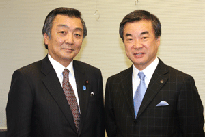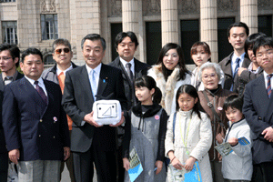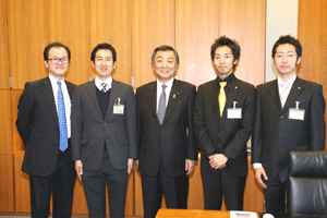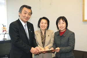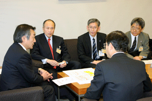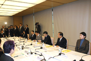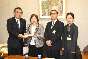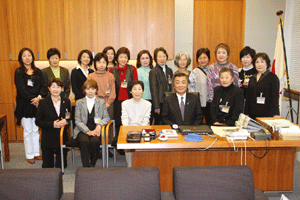 高齢社会をよくする女性の会の樋口恵子理事長、実践女子大学人間社会学部の鹿嶋敬教授、国際労働財団の熊崎清子さんが総理に面会を求めて官邸にお見えになりましたが、総理は予算委員会でお目にかかることができません。私が要望・ご意見を承ることになりました。現在国の出先機関の組織改革が進められており、ブロックごとに再編成しようと検討が進められています。女性の社会的立場や雇用を守るために厚生労働省の都道府県労働局に「雇用均等室」が置かれていますが、この組織も見直しの対象となっています。樋口さんらはこの「雇用均等室の機能」を存続させる必要性を訴えておられます。まだまだきめ細かな活動が必要であると、その理由や現状などについて丁寧なご説明いただきました。ご趣旨は良く理解できますので、今後引き続き慎重に検討を重ねて行きたいとお応えしました。