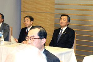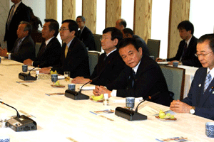 グループ2000というのは自民党2000年当選組みの皆さんの会です。総勢で28名いらっしゃるそうです。麻生総理との意見交換会で、一人ひとりから地元の様子、意見、激励などが伝えられ、最後に総理から感謝の挨拶がなされました。