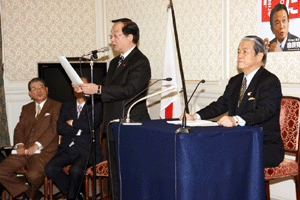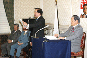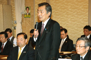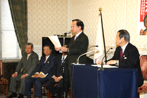 大島国対委員長の挨拶では、内需刺激策としての定額給付金に関する国会の手続きが出口が見えてきたことを歓迎し、「今は景気対策に専念」との考えを改めて明確に訴えられました。