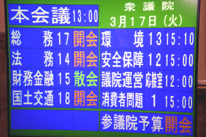 本日の国会の流れについての説明があった。