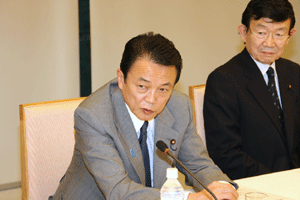 「第二次補正予算関連法案が成立し、早期の高速道路料金の引き下げ、地方においては早速定額給付金の支給も行われている。各位のご協力に感謝申し上げる。中小企業対策、雇用対策、介護・医療対策、地方対策など様々なことが起動している。今、ようやく参議院の本格的な予算審議が始まったが、年度内成立を期してまいりたい。そして、切れ目のない景気対策を実施していきたい」と発言した。