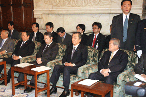 大島国対院長から、小沢代表秘書逮捕事件はいまや司直の手に委ねられていること、我々は今日、大きなひとつの山を迎え、今後の各委員会運営などに引き続き積極的に取り組むべしとの挨拶がなされました。