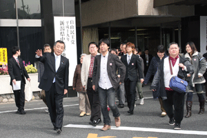 ▼自民党本部を出発→国会議事堂へ