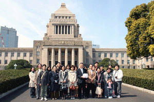 ▼正門で議事堂を背景に記念撮影
