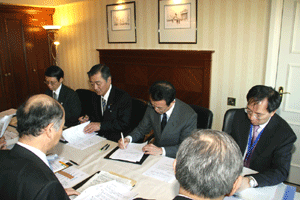 ロンドンでの最初の公式な日程は、韓国の李明博(イ・ミョンバク)大統領との首脳会談となりました。麻生総理と李大統領が顔を合わせるのは、なんと、この半年間で6回目。首脳会談も4回行っており、李大統領は、麻生総理ともっとも頻繁に意見交換を行っている首脳の一人です。私も4回全てに同席していますが、今回の首脳会談は、これまで以上に親密な雰囲気の中で、とても密度の濃いものとなりました。経済問題やアフガニスタン・パキスタン問題、北朝鮮問題などについて、つっこんだ意見交換が行われました。北朝鮮ミサイル問題については、李大統領より、「日本の上を飛び越える形で発射されるため日本は国民を守るためいかなる措置もとることができるし、韓国としてもそれを認めている」として、日本政府の北朝鮮ミサイル対策への対応に理解が示されました。