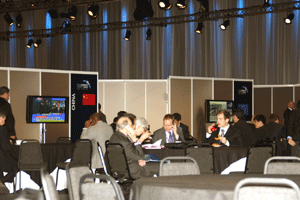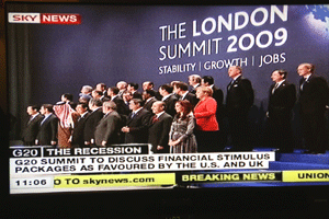 いよいよ、金融サミットの首脳による全体会合が開催されます。会場となるエクセル・センターは、ロンドン郊外の倉庫群の中にありました。倉庫群は、私の地元、横浜の倉庫街と比べると少し人の往来が寂しい感じがする場所でしたが、エクセル・センターの中は、非常に立派なつくりになっていました。会議場には各国首脳と財務大臣、そしてその支援をする事務方2名しか入ることができず、その他の随員は各国に用意された作業ブースで、首脳や財務大臣をサポートするようになっていました。私も、作業ブースで他の随員の皆さんと、総理のサポートに努めました。麻生総理は、会議の直前まで、作業ブースで最後の打ち合わせを行うなど、非常に精力的に会議に臨んでおられました。