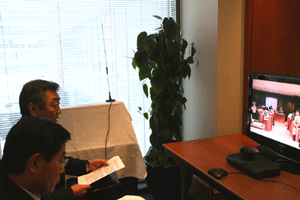 インタビューは、水均益さんという人気の高いキャスターによって行われました。内容は日中関係の展望などでしたが、中国側の日本との良好な関係を重視する姿勢が伺える、とても和やかな雰囲気でインタビューは進みました。このインタビューの内容は、これまでブレア・イギリス元首相やプーチン・ロシア首相なども出演した「トップ・トーク」という、中国の人気番組で放送される予定だそうです。
