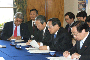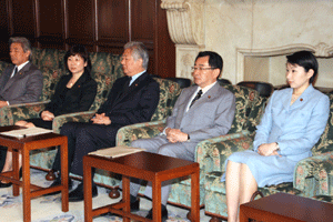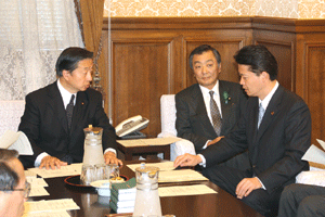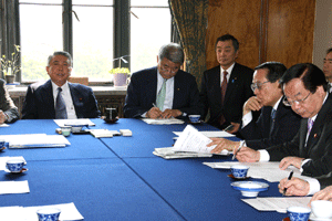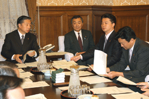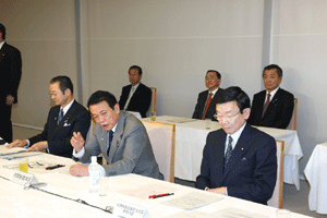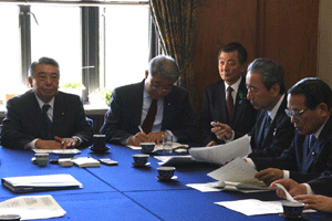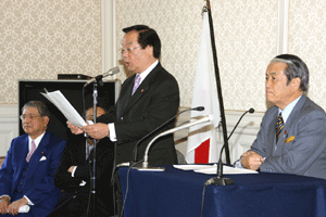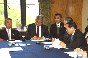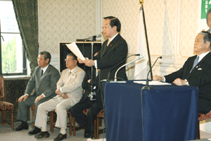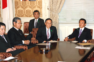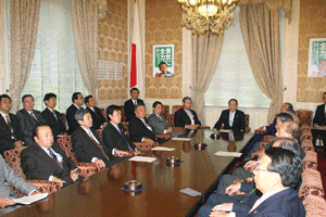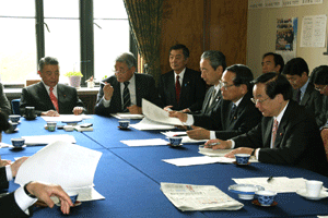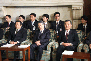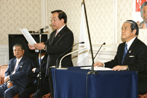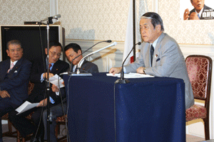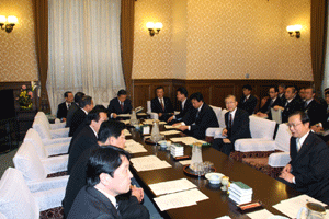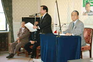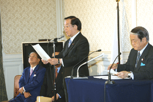 (細田幹事長から)「今、参議院において、消費者庁設置法案、国民年金法改正法案など重要法案の審議にご苦労をおかけしているが、よろしくお願いしたい。補正予算、関連法案についても、早期成立を目指したいので、よろしくお願いしたい」