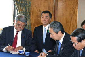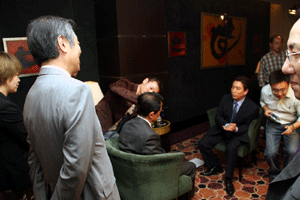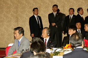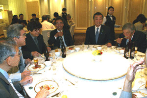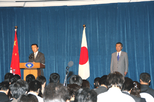 温総理との首脳会談の後には、温総理主催による歓迎晩餐会が行われましたが、私は、総理の首席随員として、政府を代表して首脳会談の結果を速やかに同行記者の皆さんにご説明する役割を負っていますので、晩餐会は失礼して、宿舎に飛んで帰りました。