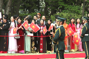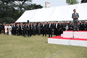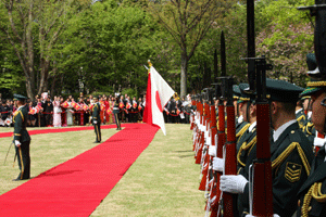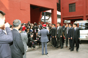 宿舎到着後は、短時間休憩を取り、その後、早速、今日の温家宝総理との首脳会談に向けた打ち合わせを行いました。温総理との会談に先立って、北京の人民大会堂で、今回の麻生総理の中国への公式訪問に対する歓迎式典が催されました。人民大会堂の中にある「北大庁」というとても大きなホール行われた歓迎式典はとても厳かなムードの中で行われ、また非常に多くの儀仗兵が参加するもので、圧巻でした。