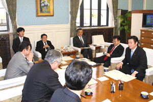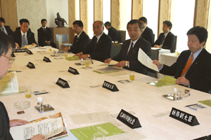 訪中2日目は、まず、朝食を兼ねた打ち合わせからスタートしました。今日も、胡錦濤国家主席との首脳会談や内外記者会見など、非常に忙しい一日になりますので、それに備えるため、朝食時から早くも仕事をスタートしました。