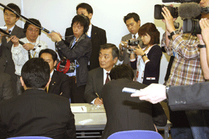 役員連絡会後、細田幹事長は記者会見(平成21年4月28日(火)10:10〜10:22 於:院内平河クラブ会見場)で下記の通り語りました。