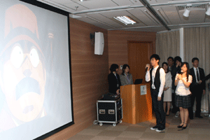 センターの視察では、日本の外務省が行っている「国際漫画賞」の受賞者である伊川(イセン)さんとの交流や、外国語大学で日本語を勉強された学生さんによる日本のアニメ「名探偵コナン」のアフレコ風景の視察、そして北海道を舞台にした、中国で一大ブームを巻き起こした「冷やかしお断り」という中国映画を撮影した監督さんとの懇談が行われました。映画やアニメといったものが持っている影響力の大きさというものを改めて実感しました。