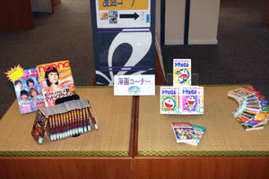 大使公邸での昼食を終えた後は、国際交流基金が北京市内で運営する「日本文化センター」の視察を行いました。このセンターには、漫画など、日本の文化を中国の皆さんにご紹介するための展示品が多く並べられていました。