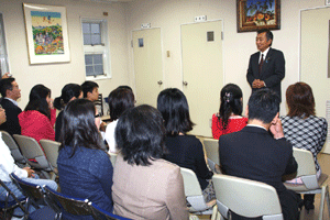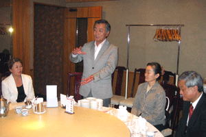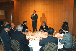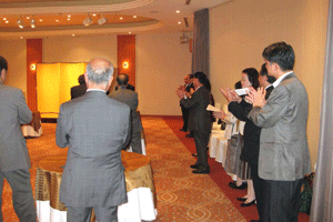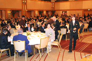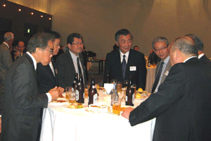 私からは次のようなご挨拶を述べました。「本日はAOTS (The Association for Overseas Technical Scholarship) 同窓会代表者会議さよならパーティーへご招待いただきありがとうございます。また、AOTSが今年で50周年を迎えられたことを心よりお祝い申し上げます。過去50年にわたって人材育成事業に取り組まれ、その結果として、このようなたくさんの優秀な人材を輩出されたこと。また、このように帰国研修生の皆様が同窓会という組織を結成すると共に、自主的に各国の産業発展に貢献し、未だに日本との関係を大切にされていることは、AOTSのみならず、日本にとっても誇るべき貴重な財産だと思います。今後も自国の産業発展だけでなく、日本との友好関係の増進のためにも貢献されることを願って、乾杯とさせていただきます。・・・乾杯!」