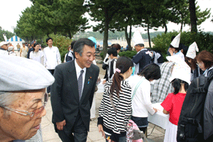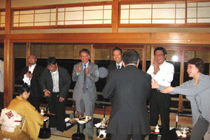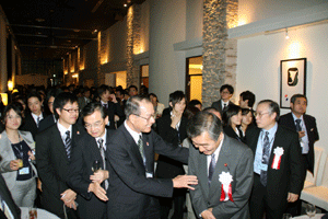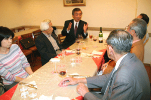 明日の特別講演のため来日されたノーベル化学賞受賞者・下村脩(しもむら・おさむ)博士をお迎えする歓迎の宴に、各都道府県薬剤師会の代表者らと共に出席しました。大変静かな雰囲気を持たれた下村博士は、特にこの席でのご発言はありませんでしたが、皆さんとのおしゃべりを楽しんでいらっしゃいました。