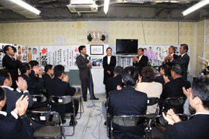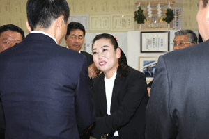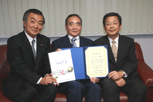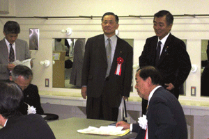 一昨日の開会式典でお渡しするはずだった感謝状が、小宮山さんが欠席のためお渡しできませんでした。そこで、式典ではお客様にお披露目した上で、今日金子理事長から直接小宮山さんに渡されました。