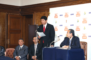 全国各地から国税労組の代表者が現状についての説明と定員確保などの要望を受け取りました。