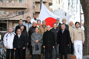 末吉町3,4丁目町内会の行事、国旗掲揚式に出席しました。健やかに新春を迎えたことを出席者の皆さんと喜び合います。会場のお世話を頂いている村上健司県議会議員の事務所で新春の抱負について語り合いました。