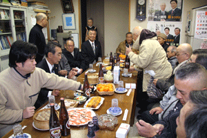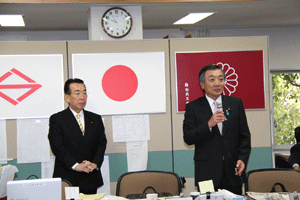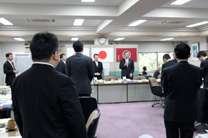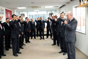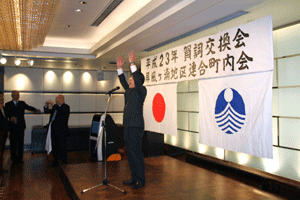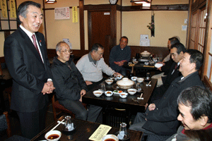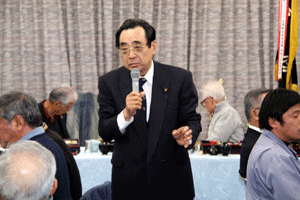 大川登支部長は、「雨も降らず我々の仕事には良い事だが、仕事としては一番暇な時期でもある。4月に行われる統一地方選挙迄鋭気を養って下さい。景気も経済も厳しいけれど、皆で力を合わせて頑張って行こう!」と挨拶されました。