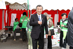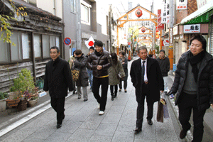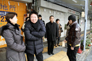 黒川順吉会長は挨拶で、「この地区は約250の店舗からなっているが、他と比べまだ活気はあるものの前年比2割減の落ち込みという大変厳しい状況で、店舗の入れ替えも徐々に増えている。厳しい経済状況の中、それぞれが努力してやっている。チェーンも進出してくるが協力して共存していくしかない」と語りました。各地商店街の皆様には各地元地域を元気にしていただきたいと商店街活動の活発化に期待しています。