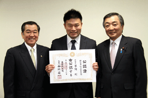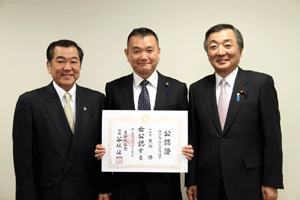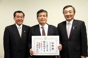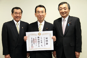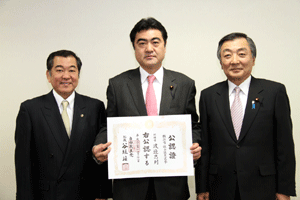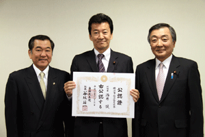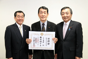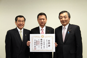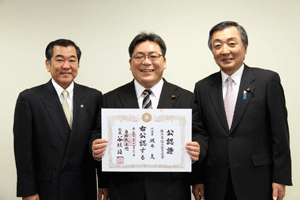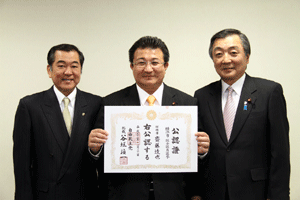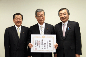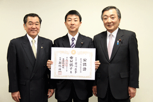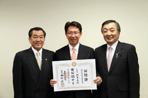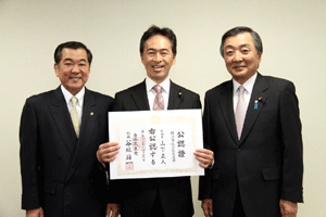 4月に実施される横浜市会議員選挙に挑戦する立候補予定者に、谷垣総裁からの公認證を自民党横浜市連会長の私から伝達しました。公認予定者総数は31名ですが、今日は28名の皆さんにお渡しすることができました。