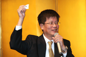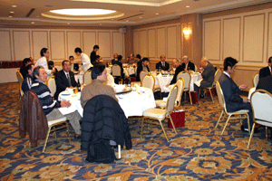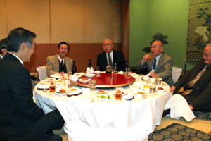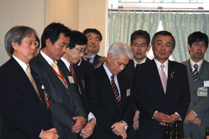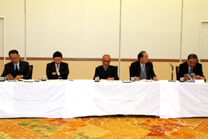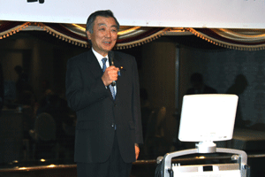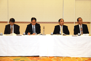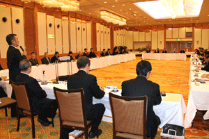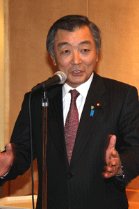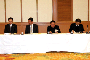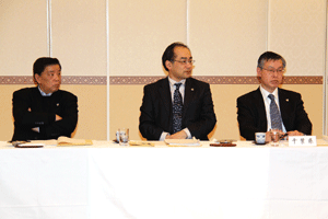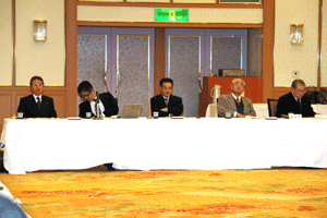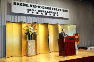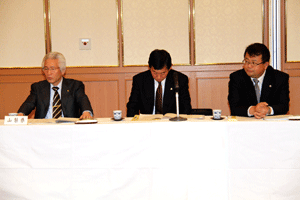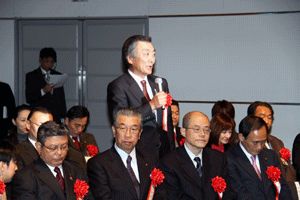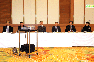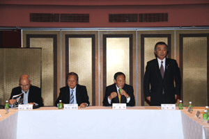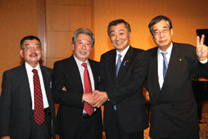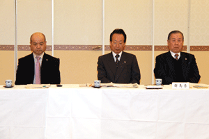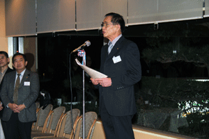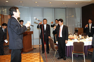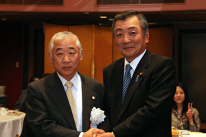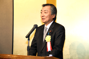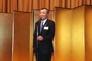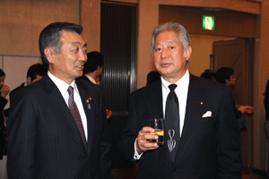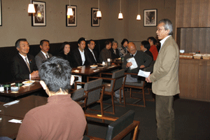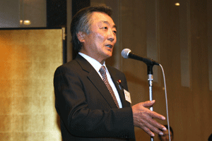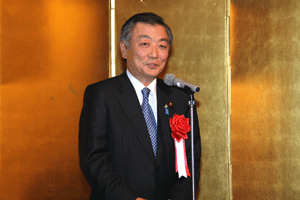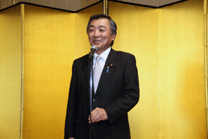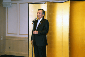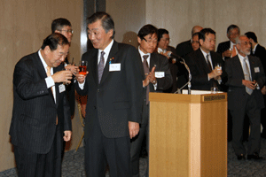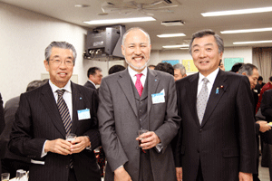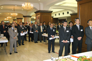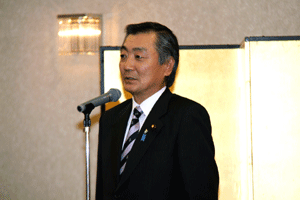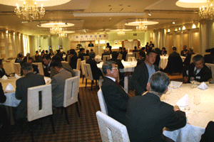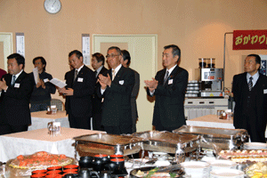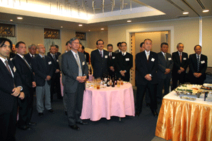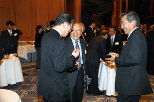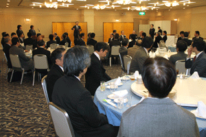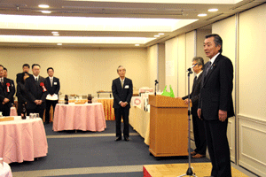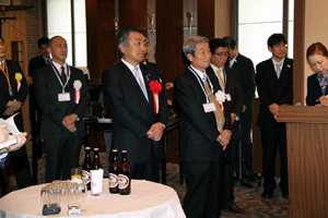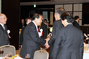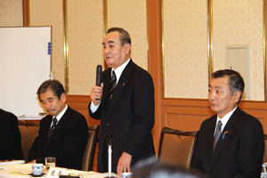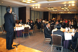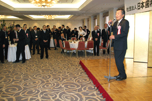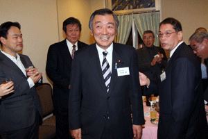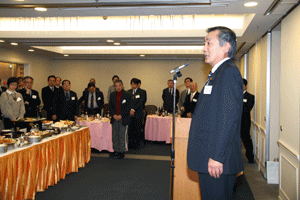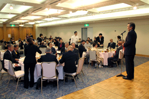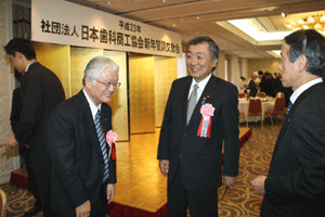 中尾眞会長のご挨拶では「元気の出る活動を進めて行きたい。特に、次の3点に重点として頑張りたい。@高齢者歯科の介護・在宅・訪問診療用機材の開発を特に、来年度の診療・介護報酬の同時改定に向けて開発を進めて行く、A歯科医療機材のトレ-サビリティを確保する国民の安心感を持って頂く、B日本歯科医療機材を世界に売っていく。世界に羽ばたく、の3点を頑張ります」と力強く述べられました。私からは、世相は「不安」、「笑顔」で吹き飛ばそうと祝辞を述べさせていただきました。