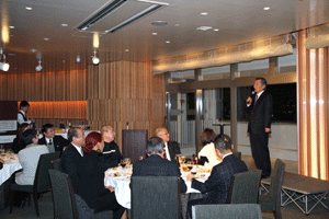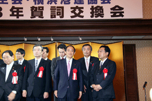 横浜港運協会の藤木会長の挨拶では、これからの横浜の経済ばかりか日本の港を守るため全力で尽くしていく旨のご挨拶があり、昨年国際コンテナ戦略港湾に決定した京浜港をさらに具体的に形作っていく大切な年の幕開けと本年を位置づけました。