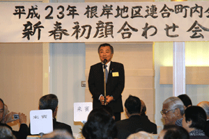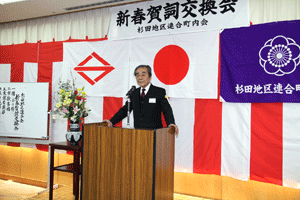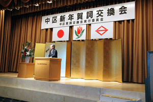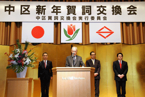 中区の恒例の新年賀詞交換会では、これからの中区の取り組みについて中区長からお話があり、議員団を代表しての祝辞は村上県議会議員からありました。より良い中区作りに邁進する旨の決意が述べられました。