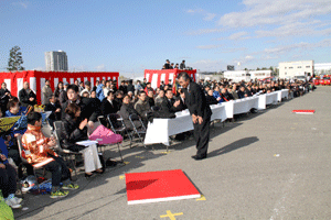 磯子区の消防出初式は杉田臨海緑地で大規模に行われました。ヘリコプターの救助訓練などもあり出席した区民の皆さんはビックリ。きびきびした出初式に訓練の成果を示すことができたと思います。素晴らしい。