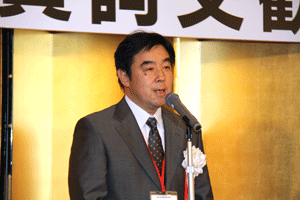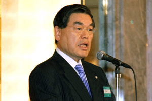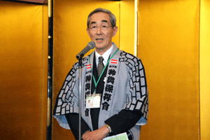【代理出席秘書報告】 永井良和会長は次の通り挨拶されました。「消費税のアップだけは断固として反対であり、仮に増税になったとしても食糧品に限っては下げて頂かないと我々の業界はますます厳しい状況におかれてしまう。昨年水産連合の大会が杜の都仙台で開催されたが、約650人の人が集まり当面する諸問題について語り合うことができた。」