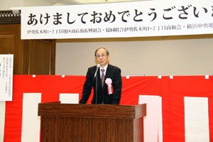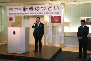 会場を移して磯子区の新年賀詞交換会が引き続き開かれました。地元の皆さん、磯子区役所の皆さん、選出県市議の皆さんの協力によって昨年も磯子区は活気ある街として伸びてきました。益々の発展を祈ります。