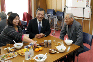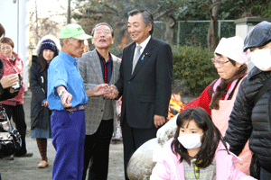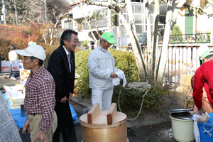 【代理出席秘書報告】 富岡公園で恒例の餅つき大会が開催されました。柳下重郎連合町内会長は「地域福祉コミュニティ事業として青少年指導員、体育指導員の皆さんのご協力を頂き開催しています。地域の皆さん楽しみにして頂いています。」とお話されました。