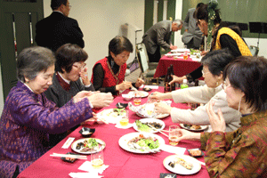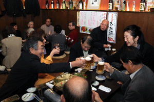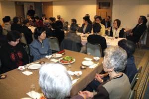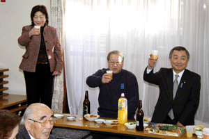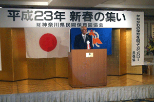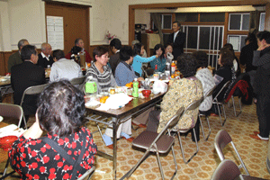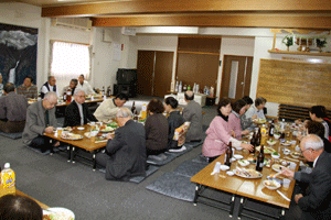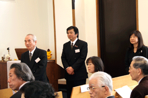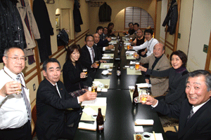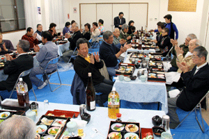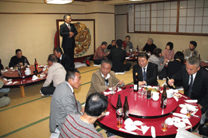 本間孝康会長のご挨拶は伺う事が出来ませんでしたが、祝宴の中で日頃お世話になっている金沢区の龍華寺の和田副会長より、人と人との絆が軽視される「無縁社会」について、横浜でも増えており危惧しているとのお話を頂きました。和田副会長は無縁社会についていろいろな文献を調べているとの事でした。