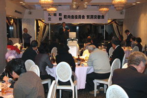 【代理出席秘書報告】 佐野典嗣会長は挨拶で、「本日、午前中に子の神社で町内会の安全、皆様の無病息災を祈念して御札を頂戴して来ました。昨年は皆様のご協力の下、町内会活動が無事に済みました事、心よりお礼申し上げます」と語りました。33名の出席で遊膳グレビーの美味しい懐石で盛り上がりました。