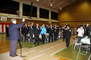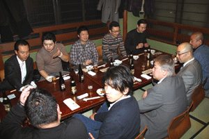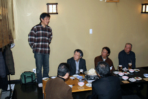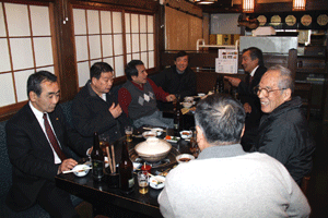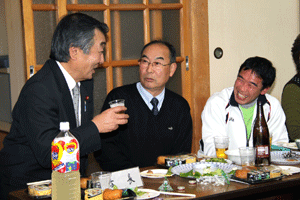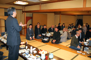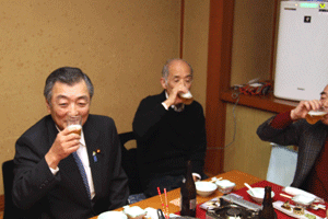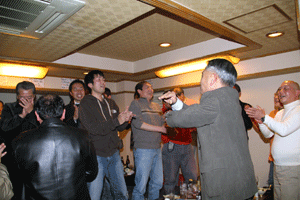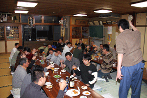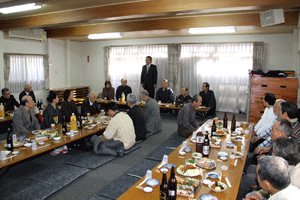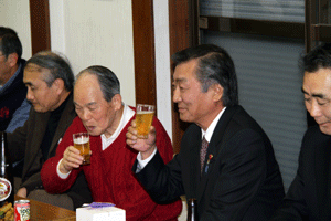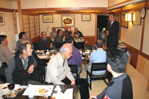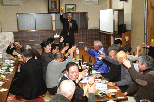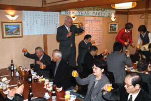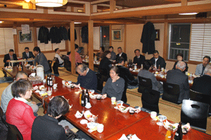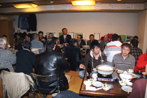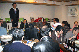 佐久間遵一会長は、「今年も年が明けてから早一月が経過します。本日は粉雪が舞う中皆様にお集まり頂き有難う御座居ます。昨年から売上向上に向け色々と試行錯誤しましたが中々難しく5月あたりから若い人達の力を借りて新しい企画を考えようと思う」と挨拶され、宴席に入るとビンゴ大会とカラオケで楽しい一時を過ごしました。