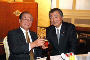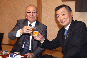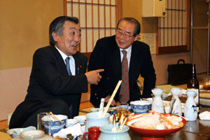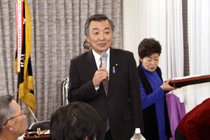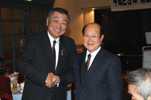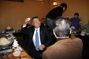 冒頭の挨拶だけで私は失礼しましたが、その後、沖安之助会長は挨拶で「多忙の中松本先生がえびす会の新年例会に来てくれた。いつ国会は解散になるがわからないが、松本先生の変わらぬ活躍を望んでいる。19年目を迎え来年は20周年になる。今年も変わらず皆が仲良くえびす会に参加して貰いたい」と、述べられたと報告がありました。