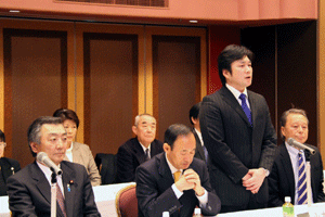 横浜市南区選出の新堀典彦先生が次期統一地方選挙に立候補しない決断をされ、公認取下げ申請が提出されました。それを受けて急遽総務会が開催され、取り下げを了承すると同時に、その後継者として三橋政雄氏(41)の公認申請が審議されました。全会一致で三橋氏の公認が承認され、本人からの挨拶がありました。また、茅ヶ崎市議会議員選挙における岸高明氏(現2)の推薦も決定しました。
