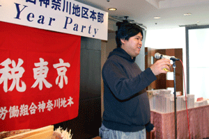 新年会は決起大会に切り替えられ、黒川勝市議からはこれまでの市政4年間の取り組みが報告され、条例提案によりヨコハマの暮らしや仕事を改善していく新たな挑戦をしていきたい、と力強い挨拶がなされました。